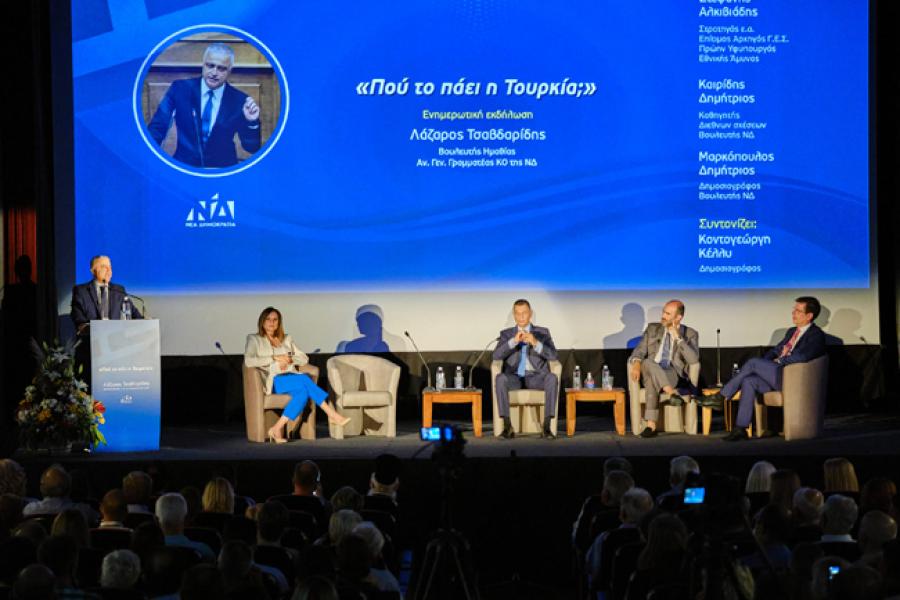 Με ομιλητές τρεις εξέχουσες προσωπικότητες της πολιτικής, στρατιωτικής, επιστημονικής και δημοσιογραφικής κοινότητας της χώρας μας και βαθείς γνώστες των ελληνοτουρκικών θεμάτων, τον Στρατηγό ε.α. και πρώην Υφυπουργό Εθνικής Άμυνας κ. Αλκιβιάδη Στεφανή, τον Καθηγητή Διεθνών Σχέσεων και Βουλευτή ΝΔ κ. Δημήτρη Καιρίδη και τον Δημοσιογράφο και Βουλευτή ΝΔ κ. Δημήτρη Μαρκόπουλο και συντονίστρια την Δημοσιογράφο κυρία Κέλλυ Κοντογεώργη, το κοινό είχε τη δυνατότητα όχι μόνο να απολαύσει ιδιαίτερα στοχευμένες τοποθετήσεις αλλά και να συμμετέχει και το ίδιο σε μία γόνιμη συζήτηση με ερωτήσεις που μπορούσε να θέσει στο πάνελ.