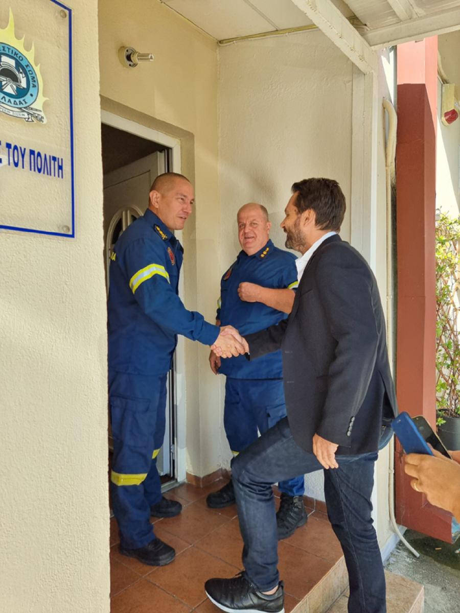 Με το Διοικητή της Π.Υ. Αλεξάνδρειας Γρηγόρη Γερόπουλο και τον Υποδιοικητή Χρήστο Αρβανιτίδη, ο Βουλευτής συζήτησε για ζητήματα προσωπικού, εστιάζοντας ιδιαίτερα στην ανάγκη μεταπήδησης της Πυροσβεστικής Αλεξάνδρειας από κατηγορία Δ´ σε Γ´, προκειμένου να μη γίνονται μεταθέσεις και αποδυναμώνεται η Υπηρεσία. Επιπρόσθετα, κατέγραψε όλες τις ανάγκες σε εξοπλισμό, καθώς και τις κτιριακές ενέργειες, που απαιτούνται για την αναβάθμιση του κτιρίου και δεσμεύθηκε, ότι θα μεσολαβήσει για την άμεση υλοποίηση τους, όπως έχει πράξει κατά το παρελθόν.