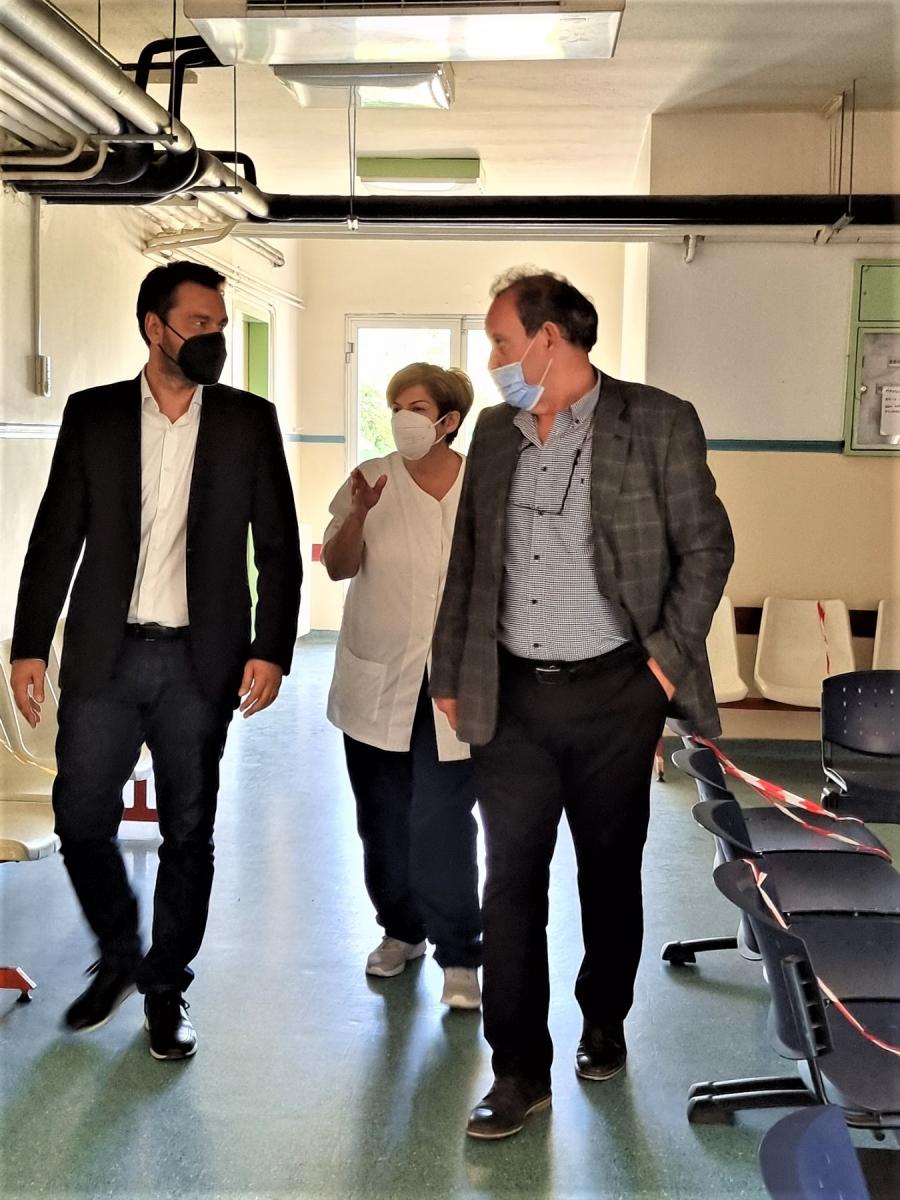 Στο Κ.Υ Αλεξάνδρειας συναντήθηκε με τον Πρόεδρο της Διοικούσας Επιτροπής, κ. Ι. Γκιουρτζή και την υγειονομική υπεύθυνη-συντονίστρια του Κ.Υ., κ. Π. Αμπεριάδου και κατέγραψαν από κοινού όλα τα μείζονα ζητήματα. Ο Βουλευτής δεσμεύτηκε ότι θα κάνει ό,τι είναι δυνατόν για να καλυφθεί το σημαντικό κενό του ακτινολόγου στο Κ.Υ, ζητώντας από τον Υπουργό Υγείας, την άμεση κάλυψή του. Δεσμεύτηκε επίσης, να διεκδικήσει καλύτερη κατανομή των ειδικοτήτων ιατρών και πιο τακτικές επισκέψεις τους στο Κ.Υ, προκειμένου να εξυπηρετούνται οι πολίτες της Αλεξάνδρειας, χωρίς να επιβαρύνονται με μετακινήσεις στα Γενικά Νοσοκομεία.