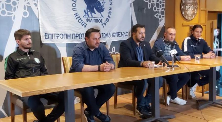 Στην αρχή της συνέντευξης μίλησε ο Πρόεδρος της ΕΠΣ Ημαθίας Στέργιος Μουρτζίλας και μαζί του οι Πρόεδροι των δύο φιναλίστ Τάκης Παπαδόπουλος και Γιώργος Τσαχουρίδης, οι οποίοι αναφέρθηκαν στις προσπάθειες που κάνουν οι ομάδες τους για την ανάπτυξη του ερασιτεχνικού ποδοσφαίρου μας και ευχήθηκαν ο τελικός να αποτελέσει μια αληθινή γιορτή του ποδοσφαίρου και να κερδίσει ο καλύτερος.