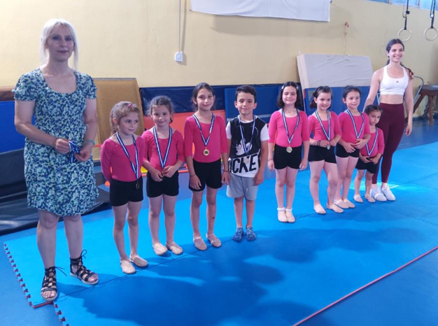 Στο κατάμεστο από κόσμο γυμναστήριο οι μικροί αθλητές και αθλήτριες παρουσίασαν ασκήσεις στον ακροβατικό διάδρομο και στο μίνι τραμπολίνο, ενθουσιάζοντας με την εμφάνισή τουςγονείς και φίλους της γυμναστικής που είχαν την τύχη να παρευρίσκονται.