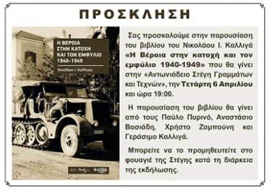 Αύριο Τετάρτη η παρουσίαση του βιβλίου του Νίκου Καλλιγά στη Βέροια