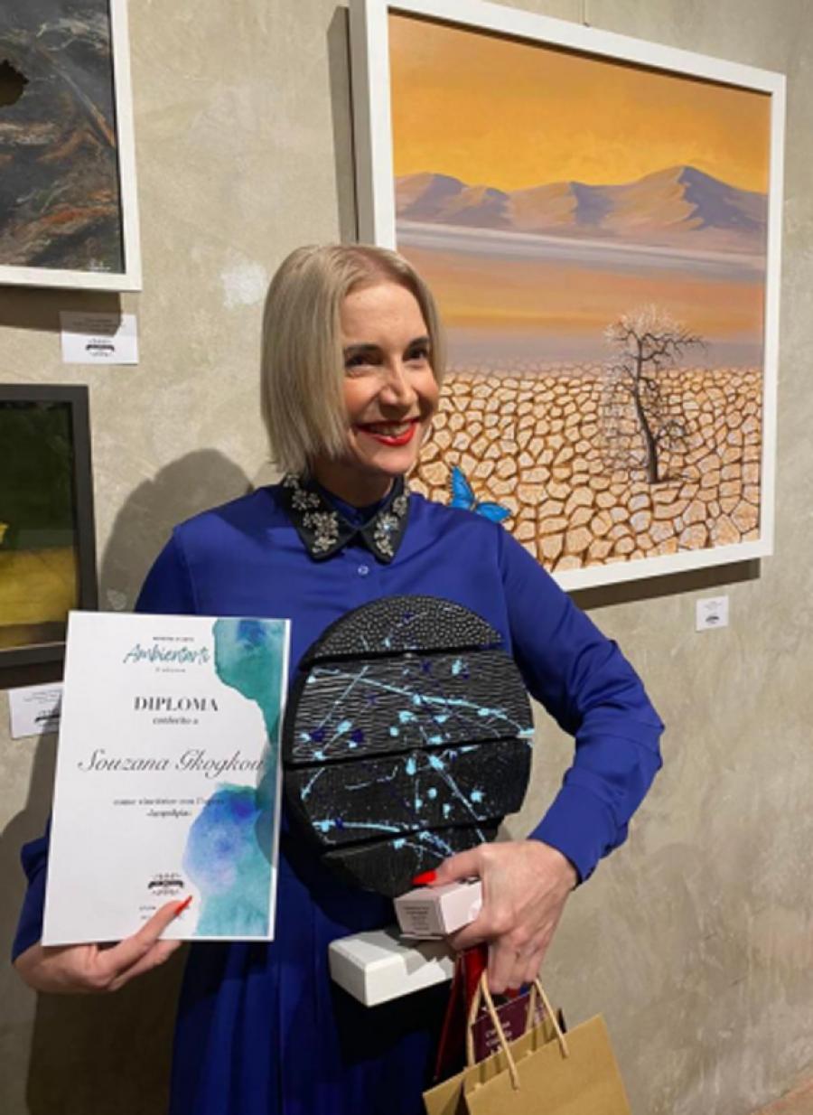 Το έργο της Σουζάνας με το τίτλο «Λειψυδρία» (80 επί 80- ακρυλικό σε μουσαμά) κατέκτησε το δεύτερο βραβείο ανάμεσα σε 57 διεθνείς σπουδαίες συμμετοχές.