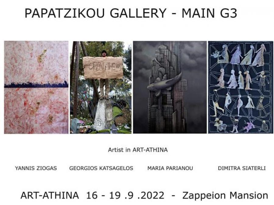 Η ΓΚΑΛΕΡΙ ΠΑΠΑΤΖΙΚΟΥ συμμετέχει και φέτος στην μεγάλη γιορτή της τέχνης και παρουσιάζει στο περίπτερο G3 τις εργασίες των εικαστικών Γιάννη Ζιώγα, Γεωργίου Κατσάγγελου, Μαρίας Παριανού και Δήμητρας Σιατερλή.