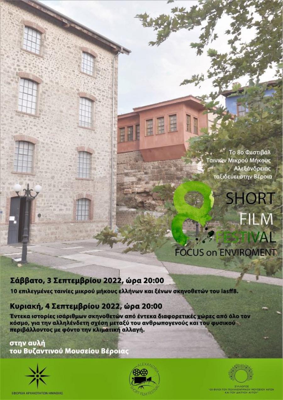 Ο Σύλλογος Φίλων Πολυκεντρικού Μουσείου Αιγών και η Λέσχη Κινηματογράφου και Πολιτισμού Αλεξάνδρειας σε συνεργασία με την Εφορεία Αρχαιοτήτων Ημαθίας, σας προσκαλούν σε ένα διήμερο κινηματογραφικών προβολών που θα πραγματοποιηθούν στον αύλειο χώρο του Βυζαντινού Μουσείου Βέροιας στις 3 και 4 Σεπτεμβρίου 2022 και ώρα 20:00.