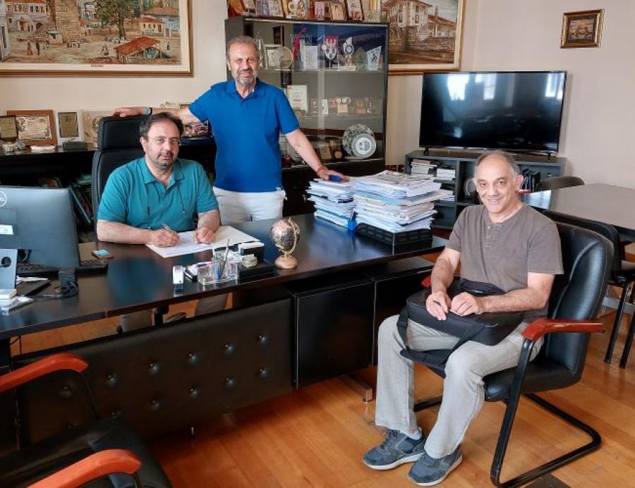 Στην υπογραφή της σύμβασης για την «ΣΥΝΤΗΡΗΣΗ ΚΑΙ ΕΠΙΣΚΕΥΗ ΣΧΟΛΙΚΩΝ ΚΤΙΡΙΩΝ ΚΑΙ ΔΗΜΟΤΙΚΩΝ ΑΝΟΙΧΤΩΝ ΑΘΛΗΤΙΚΩΝ ΧΩΡΩΝ ΔΗΜΟΥ ΒΕΡΟΙΑΣ - ΚΑΤΑΣΚΕΥΗ ΕΞΟΔΟΥ ΚΙΝΔΥΝΟΥ ΚΑΙ ΟΛΟΚΛΗΡΩΣΗ ΠΥΡΟΠΡΟΣΤΑΣΙΑΣ ΤΟΥ 1ΟΥ ΔΗΜ. ΣΧΟΛΕΙΟΥ ΒΕΡΟΙΑΣ» προχώρησαν ο Δήμαρχος Βέροιας, κ. Κωνσταντίνος Βοργιαζίδης και ο Αντιδήμαρχος Τεχνικών, κ. Αλέξανδρος Τσαχουρίδης, με τον Κωνσταντίνο Ιωαννίδη, εκπρόσωπο της Κ. ΙΩΑΝΝΙΔΗΣ ΑΤΕ ΠΙΛΑΓΑΣ που εδρεύει στη Βέροια.