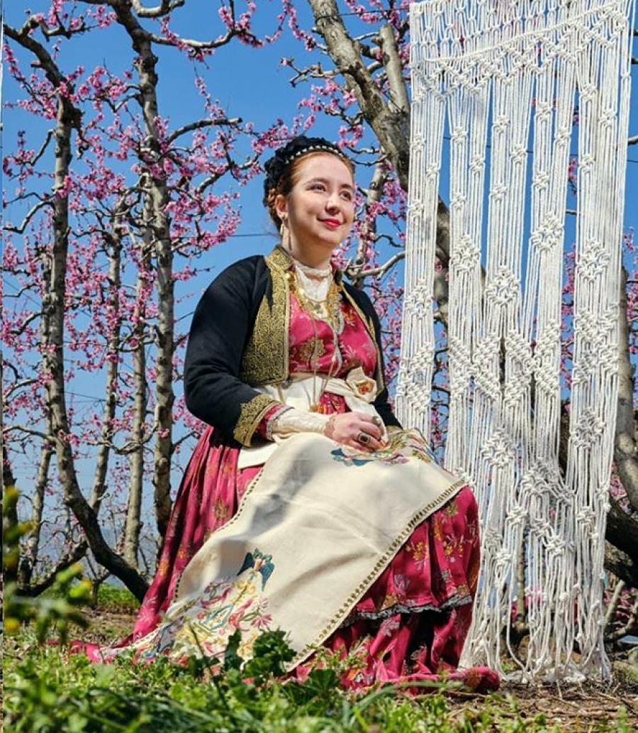 Μαγικές εικόνες ανάμεσα στα ροζ άνθη των ροδακινιών όπου αναδεικνύονται περίτεχνα οι παραδοσιακές φορεσιές από τη Βέροια, το Ρουμλούκι και την Επισκοπή Νάουσας.