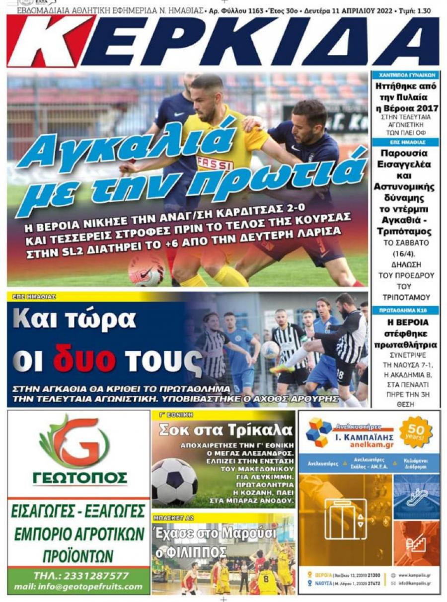 Διαβάστε στην εφημερίδα "Κερκίδα" της Δευτέρας