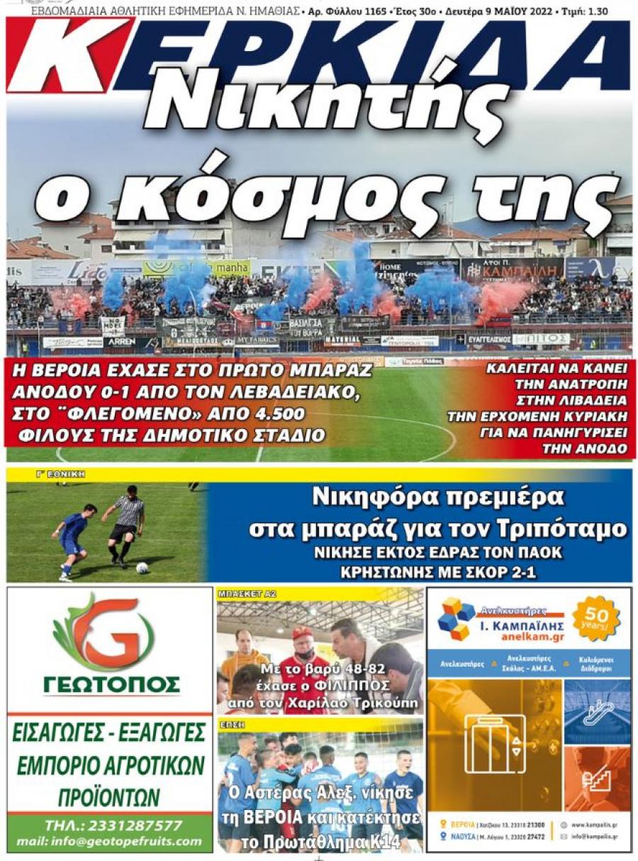 Διαβάστε σήμερα Δευτέρα στην εφημερίδα "Κερκίδα"