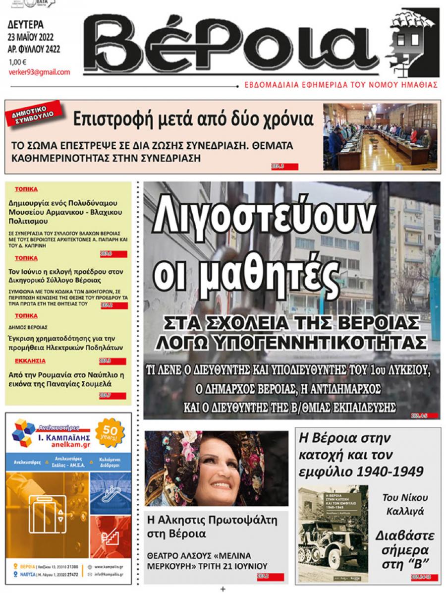 Διαβάστε στην εφημερίδα "Βέροια" της Δευτέρας