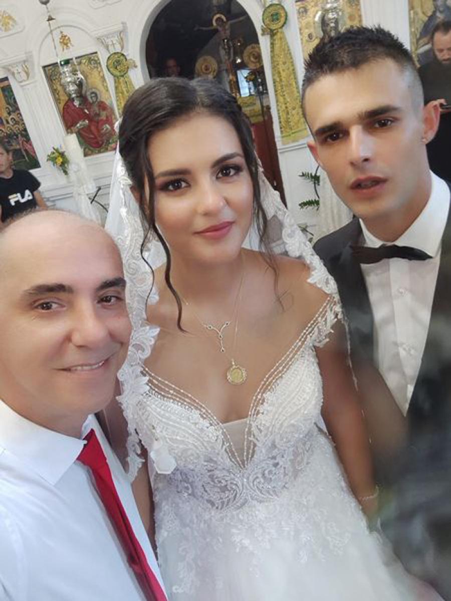 Το μυστήριο τελέστηκε στον Ιερό Ναό Αγίου Δημητρίου στα Παλατίτσια και κουμπάροι των νεόνυμφων ήταν ο Δημήτρης Ντάλλας και η Γεωργία Θεοδωρακοπούλου.