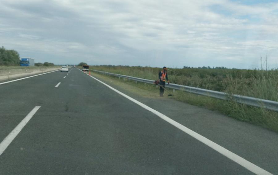 Πολύ επικίνδυνο!!! Κόβουν με μεσινέζα τα χόρτα στην Εγνατία Οδό.