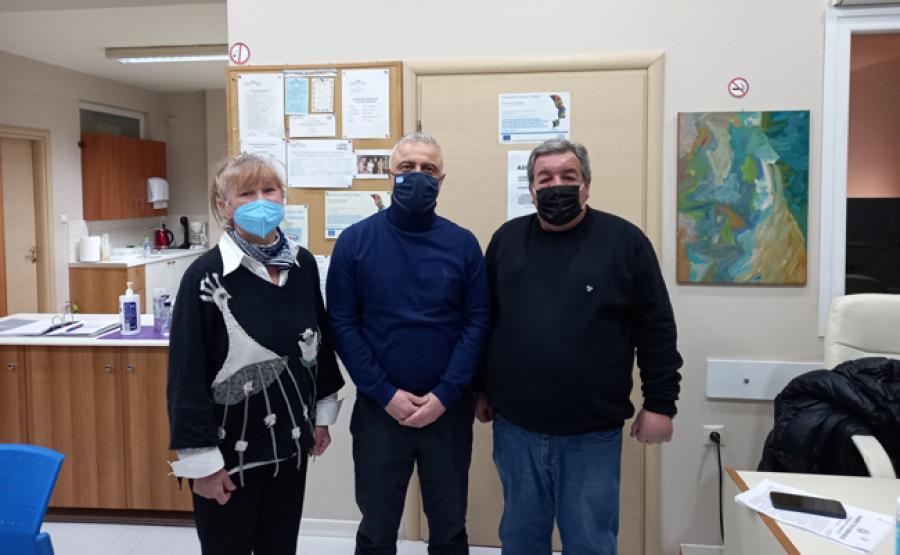Εκεί συναντήθηκε με τον Πρόεδρο Γιώργο Σαλιάγκα, τον Αντ/δρο Ιορδάνη Γιαρέννη και τη Γ. Γραμματέα Μαρία Ντέντου και ενημερώθηκε για τις δραστηριότητες του Κέντρου Υποστήριξης του Συλλόγου και τα προβλήματα της ψυχικής υγείας στην περιοχή.