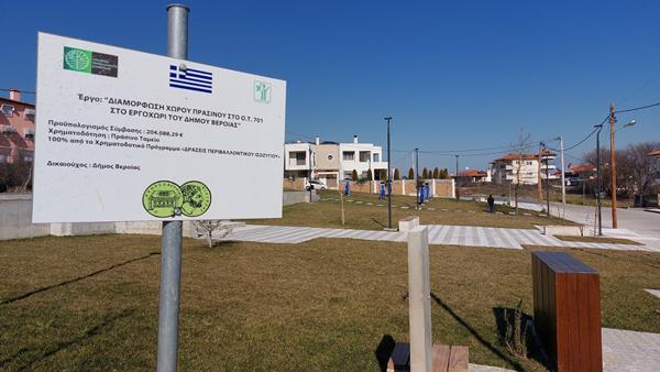 Ένας νέος πνεύμονας πρασίνου, χώρος άθλησης και αναψυχής δόθηκε προς χρήση στους δημότες της περιοχής «Φυτιώτικα», στο Εργοχώρι Δήμου Βέροιας. Με την ολοκλήρωση του έργου «ΔΙΑΜΟΡΦΩΣΗ ΧΩΡΟΥ ΠΡΑΣΙΝΟΥ ΣΤΟ Ο.Τ. 701 ΣΤΟ ΕΡΓΟΧΩΡΙ ΤΟΥ ΔΗΜΟΥ ΒΕΡΟΙΑΣ» παραδόθηκε,από τον Δήμο Βέροιας στο κοινό, ένας καινούργιος χώρος πρασίνου, στον οποίο τοποθετήθηκαν χλοοτάπητας, ξύλινα καθιστικά και κάδοι ανακύκλωσης απορριμμάτων (μέταλλο, γυαλί, χαρτί, πλαστικό), ενώ οι περίοικοι μπορούν να ασκηθούν μέσω των υπαίθριων οργάνων γυμναστικής.