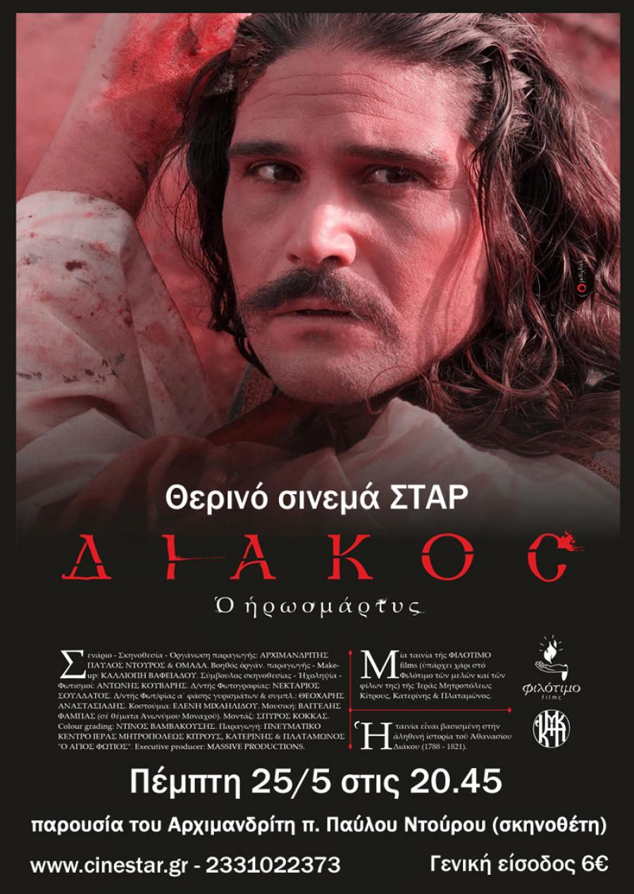 Η Ιερά Μητρόπολις Βεροίας, Ναούσης και Καμπανίας και το Κινηματοθέατρο «ΣΤΑΡ» σας προσκαλούν στην προβολή της ταινίας «ΔΙΑΚΟΣ ο Ηρωομάρτυς», η οποία πραγματεύεται την πολυκύμαντη ζωή και το μαρτυρικό τέλος του ηρωομάρτυρος Αθανασίου Διάκου.