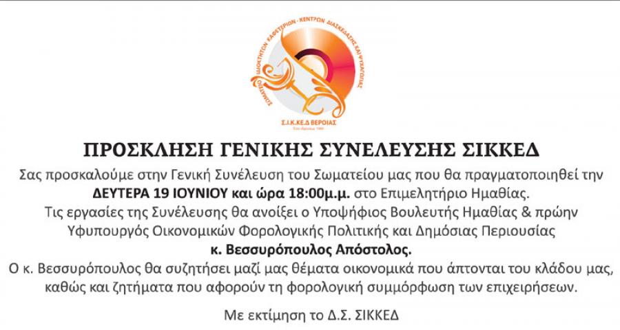 Ο Απόστολος Βεσυρόπουλος θα μιλήσει στην Γ.Σ. του Συλλόγου Ιδιοκτητών Καφετεριών Βέροιας