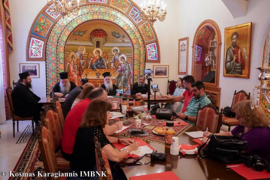 Αρχικά, ο Σεβασμιώτατος Μητροπολίτης μας κ. Παντελεήμων εξέφρασε τις θερμές του ευχαριστίες προς τους εκλεκτούς δημοσιογράφους του ηλεκτρονικού και έντυπου τύπου τόσο της επαρχίας μας όσο και ευρύτερα της εκκλησιαστικής δημοσιογραφίας, οι οποίοι στηρίζουν πάντοτε το έργο της Αποστολικής Μητροπόλεως μας.