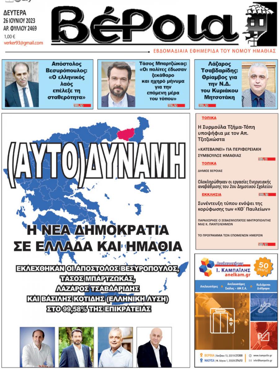 Διαβάστε σήμερα Δευτέρα στην εφημερίδα "Βέροια"
