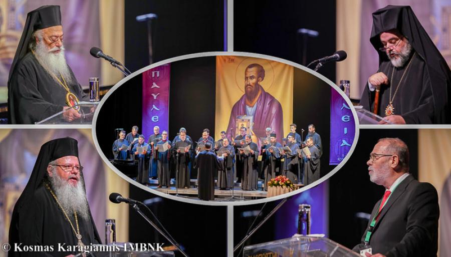 Στην αρχή χορός ιεροψαλτών υπό τη διεύθυνση του καθηγητού της Σχολής Βυζαντινής Μουσικής της Ιεράς Μητροπόλεώς μας κ. Βασιλείου Μαυράγκανου έψαλε βυζαντινούς ύμνους προς τιμήν του ιδρυτού της τοπικής μας Εκκλησίας, Αποστόλου Παύλου, και στη συνέχεια ο Γενικός Αρχιερατικός Επίτροπος της Ιεράς Μητροπόλεώς Αρχιμ. Δημήτριος Μπακλαγής καλωσόρισε τους εκλεκτούς προσκεκλημένους και τους συνέδρους στη Βέροια.
