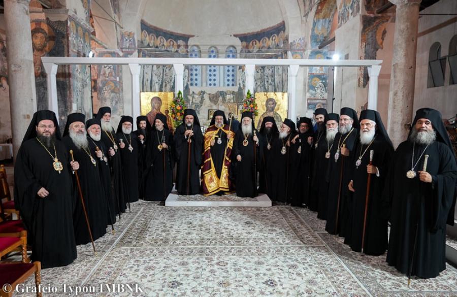 Συμμετείχαν επίσης οι Σεβασμιώτατοι Μητροπολίτες Σεβαστείας κ. Σεραφείμ, Ξάνθης και Περιθεωρίου κ. Παντελεήμων, Άρτης κ. Καλλίνικος, Τρίκκης, Γαρδικίου και Πύλης κ. Χρυσόστομος, Σισανίου και Σιατίστης κ. Αθανάσιος, Λήμνου και Αγίου Ευστρατίου κ. Ιερόθεος, Λαγκαδά, Λητής και Ρεντίνης κ. Πλάτωνας, Πολυανής και Κιλκισίου κ. Βαρθολομαίος, ο Θεοφιλέστατος Επίσκοπος Ευμενείας κ. Ειρηναίος και ο Ποιμενάρχης μας, Σεβασμιώτατος Μητροπολίτης Βεροίας, Ναούσης και Καμπανίας κ. Παντελεήμων, ο οποίος προσκάλεσε αδελφικά τους Αγίους Αρχιερείς για να συμμετάσχουν στην τελετή αναγνώσεως της Συνοδικής και Πατριαρχικής Πράξεως του πνευματικού του πατρός, Αγίου Γερασίμου του Υμνογράφου, που θα πραγματοποιηθεί αύριο κατά την Πολυαρχιερατική Θεία Λειτουργία.