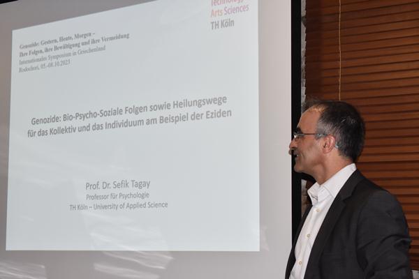 Το Σάββατο 07.10.2023 πραγματοποιήθηκε στη Νάουσα η έναρξη εργασιών του συμποσίου με φυσική παρουσία ή μέσω Zoom. Ο Καθηγητής Δρ. Ένβερ Τσετρέζ, από το Πανεπιστήμιο της Uppsalaστη Σουηδία με συνεργάτη το Δρ. Κέναν Αράζ, αναφέρθηκε στις «Τραυματικές συνέπειες της Γενοκτονίας στην περίπτωση των Ασσυρίων». Ο Δρ. Ζάιτο, Γενικός Ιατρός και Ψυχολόγος, από το Μιντγιάτ/Τουραμπντίν στην Τουρκία αναφέρθηκε στην «Κατάσταση των Χριστιανών στην Τουρκία». Ο Καθηγητής Δρ. Σέφικ Ταγκάι, από το Τεχνικό Πανεπιστήμιο της Κολωνίας ανέπτυξε το θέμα: «Γενοκτονία: Οι Βιολογικές-Ψυχολογικο-Κοινωνικές συνέπειες και θεραπευτικές μέθοδοι για την κοινωνία και τα πρόσωπα στην περίπτωση των Εζιτών-Γεζιτών». Ο Καθηγητής Δρ. Μανούσος Μαραγκουδάκης, καθηγητής Κοινωνιολογίας στο Πανεπιστήμιο Αιγαίου παρουσίασε το θέμα: «Πολιτισμικό Τραύμα, Γενοκτονίες και η θέση της Ευρωπαϊκής Ένωσης για θέματα προσφύγων και θυμάτων γενοκτονίας». Κατά τη διάρκεια του μεσημεριανού διαλείμματος έγινε επίσκεψη σε παραδοσιακό γλέντι σε καζάνι και παραχωρήθηκε γεύμα που διοργάνωσε στο «Οινοποιείο Μουραφετλή» η «Εύξεινος Λέσχη Ποντίων Νάουσας - Εθνική Βιβλιοθήκη Αργυρουπόλεως Ο ΚΥΡΙΑΚΙΔΗΣ».