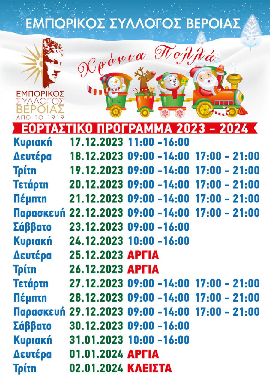 Το εορταστικό πρόγραμμα των εμπορικών καταστημάτων στη Βέροια
