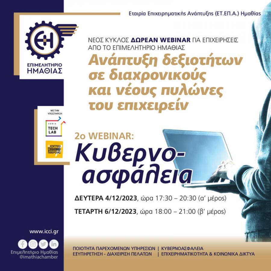 Μπροστά σε αυτούς τους πρωτόγνωρους κινδύνους που βρίσκονται αντιμέτωπες οι επιχειρήσεις, το Επιμελητήριο Ημαθίας και η Εταιρία Επιχειρηματικής Ανάπτυξης (ΕΤ.ΕΠ.Α.) Ημαθίας, σε συνεργασία με την Alpha Plan Consultants και την υποστήριξη του Veria Tech Lab της Δημόσιας Κεντρικής Βιβλιοθήκης Βέροιας διοργανώνουν δωρεάν διαδικτυακό σεμινάριο για την:
