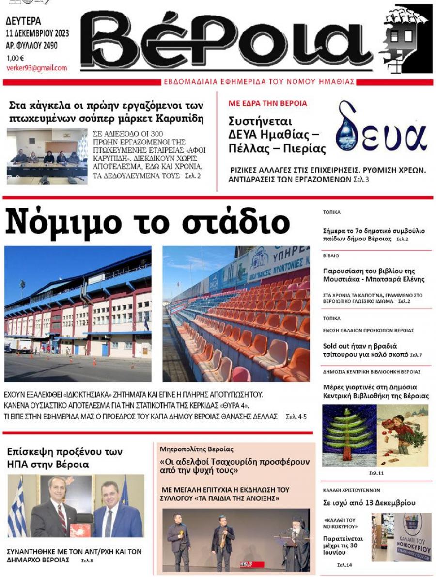 Διαβάστε στην εφημερίδα "Βέροια" της Δευτέρας