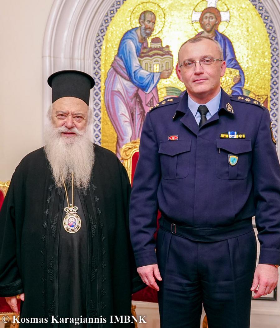 Ο Σεβασμιώτατος Μητροπολίτης μας κ. Παντελεήμων καλωσόρισε τον νέο Αστυνομικό Διευθυντή και του ευχήθηκε ο προστάτης της Ελληνικής Αστυνομίας, Άγιος Μεγαλομάρτυρας Αρτέμιος, να τον προστατεύει και να του δίνει δύναμη στα δύσκολα καθήκοντα που έχει αναλάβει. Παράλληλα ο Σεβασμιώτατος δεν παρέλειψε να εκφράσει την ευγνωμοσύνη της τοπικής Εκκλησίας προς την Αστυνομική Διεύθυνση Ημαθίας, η οποία πάντοτε βρίσκεται αρωγός και συμπαραστάτης στο έργο και στη διακονία της Ιεράς Μητροπόλεως.