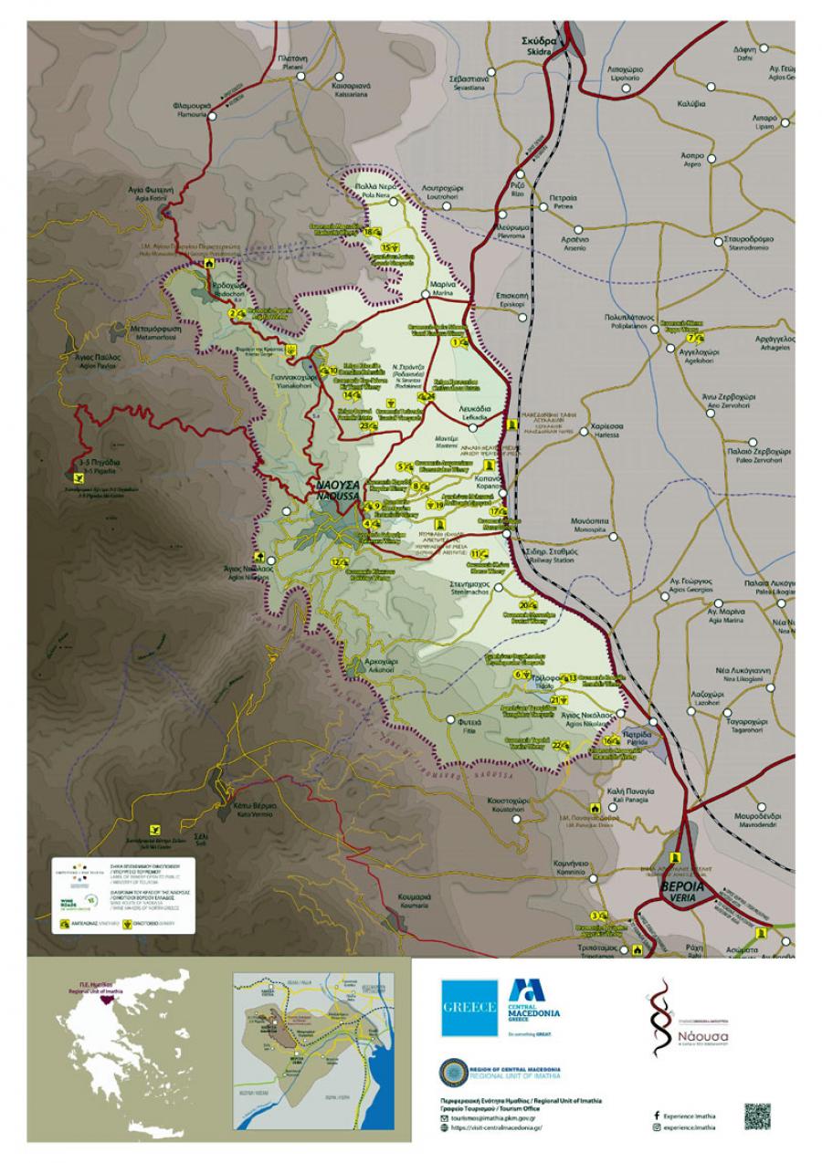 Η Περιφερειακή Ενότητα Ημαθίας, στο πλαίσιο της ανάδειξης της οινοποιητικής ζώνης της Νάουσας, προχώρησε στην έκδοση ενημερωτικού-τουριστικούχάρτη, που θα διατίθεται δωρεάν στους επισκέπτες της Ημαθίας.