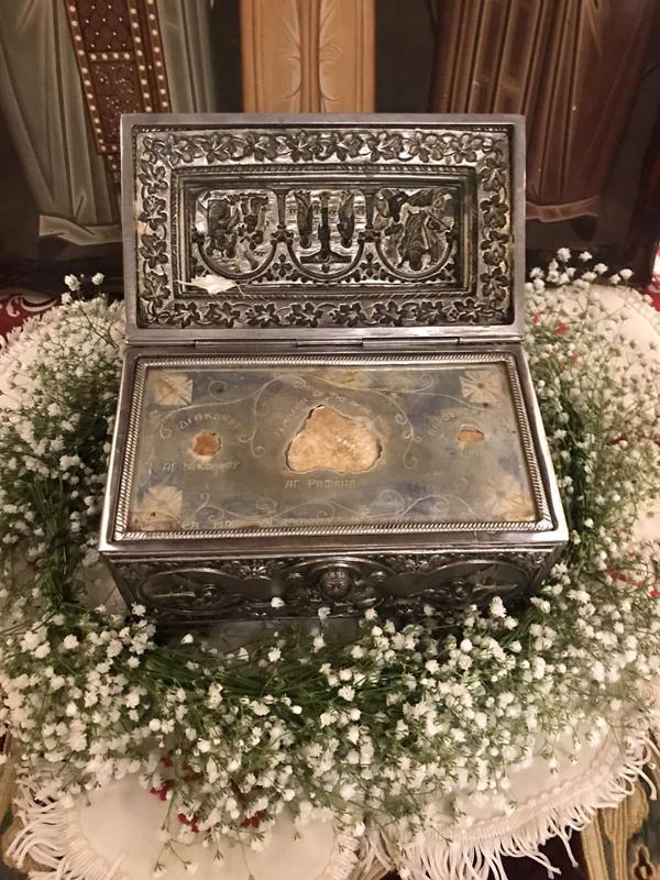 Με ιδιαίτερη λαμπρότητα και συγκίνηση πραγματοποιήθηκε η υποδοχή των Ι. Λειψάνων Αγ. Ραφαήλ, Νικολάου και Ειρήνης στον Ι.Ν. Αγ. Παρασκευής και Ταξιάρχη Μιχαήλ στην Πατρίδα το απόγευμα της Τρίτη 26 Μαρτίου 2024.