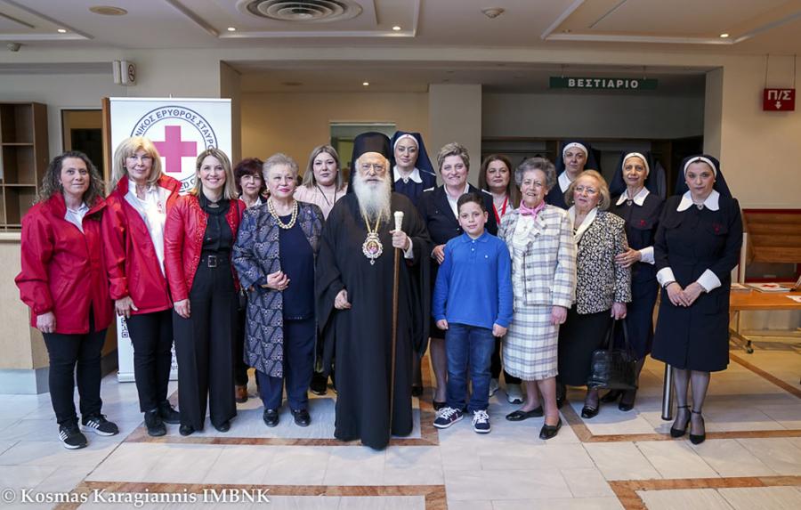 Στην αρχή η πρόεδρος του Περιφερειακού Τμήματος του Ελληνικού Ερυθρού Σταυρού Βεροίας κ. Ευσεβεία Γκουντή – Δουλγέρογλου απηύθυνε χαιρετισμό και αναφέρθηκε αφενός στη σημασία της προσφοράς και του εθελοντισμού και αφετέρου στην στήριξη της Αποστολικής Μητροπόλεως της Βεροίας στη διακονία του τοπικού παραρτήματος του Ελληνικού Ερυθρού Σταυρού.