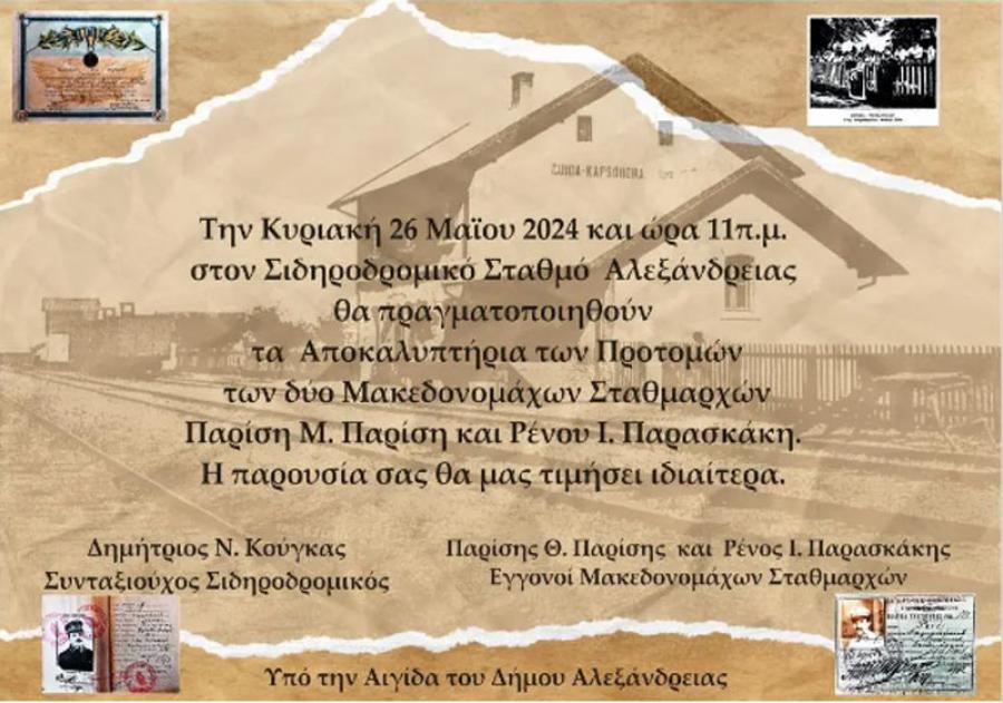 Κυριακή 26 Μαΐου: Αποκαλυπτήρια προτομών δύο Μακδονομάχων Σταθμαρχών στο Σιδηροδρομικό σταθμό Αλεξάνδρειας