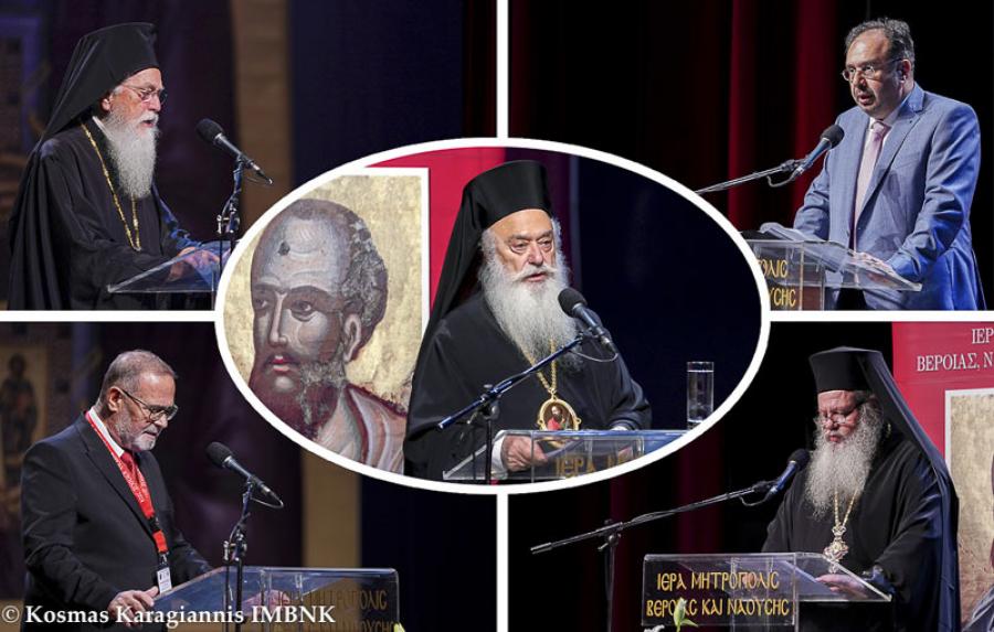 Ακολούθησαν οι χαιρετισμοί του Δημάρχου Βεροίας κ. Κωνσταντίνου Βοργιαζίδη, της εκπροσώπου του Αντιπεριφερειάρχου Ημαθίας κ. Κωνσταντίνου Καλαϊτζίδη, του προέδρου του Τμήματος Θεολογίας του Α.Π.Θ. Καθηγητού κ. Νικολάου Μαγγιώρου, του προέδρου της Επιστημονικής Επιτροπής των Παυλείων κ. Χαράλαμπου Ατματζίδη, Ομοτ. Καθηγητού της Θεολογικής Σχολής του Α.Π.Θ. και του Ποιμενάρχου μας, Σεβασμιωτάτου Μητροπολίτου Βεροίας, Ναούσης και Καμπανίας κ. Παντελεήμονος, ο οποίος κήρυξε την έναρξη των εργασιών του 30ου Διεθνούς Επιστημονικού Συνεδρίου.