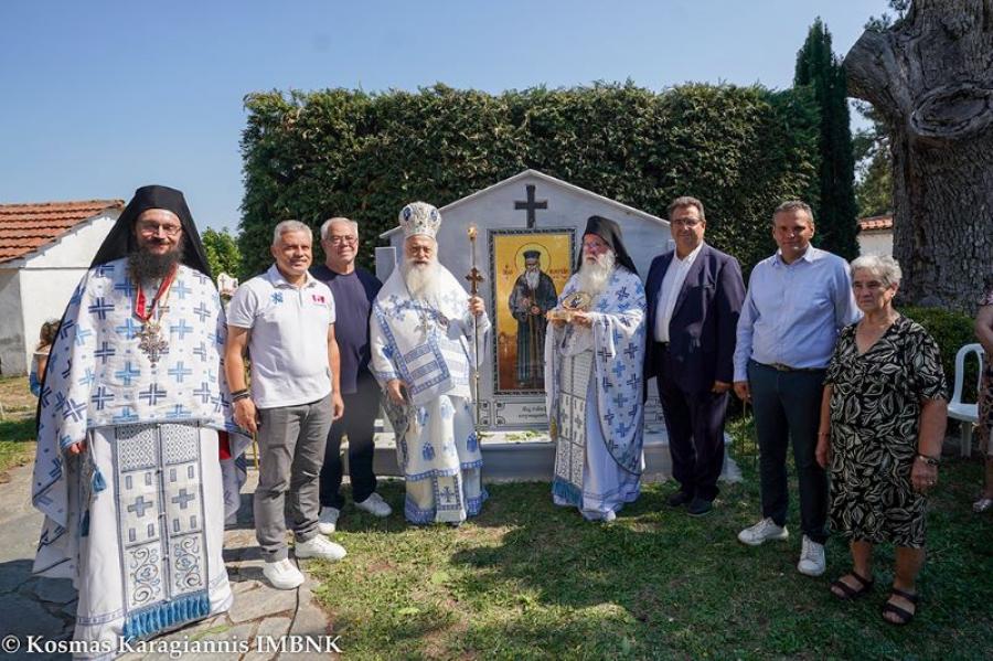 Ο Σεβασμιώτατος Μητροπολίτης μας κ. Παντελεήμων μετά τα αποκαλυπτήρια του μνημείου τίμησε με τον Σταυρό του Αποστόλου Παύλου τον προϊστάμενο της ενορίας Αρχιμ. Αιμιλιανό Καλομπάτσιο, αδελφό της Ιεράς Μονής του Τιμίου Προδρόμου Σκήτης Βεροίας και συνεχάρη τόσο τον ίδιο, όσο και τους εκλεκτούς συνεργάτες του για την πρωτοβουλία ανεγέρσεως του μνημείου, ενώ ευχήθηκε οι δύο Άγιοι, Νικόλαος και Κοσμάς, να προστατεύουν τους ενορίτες και τους ευλαβείς προσκυνητές.