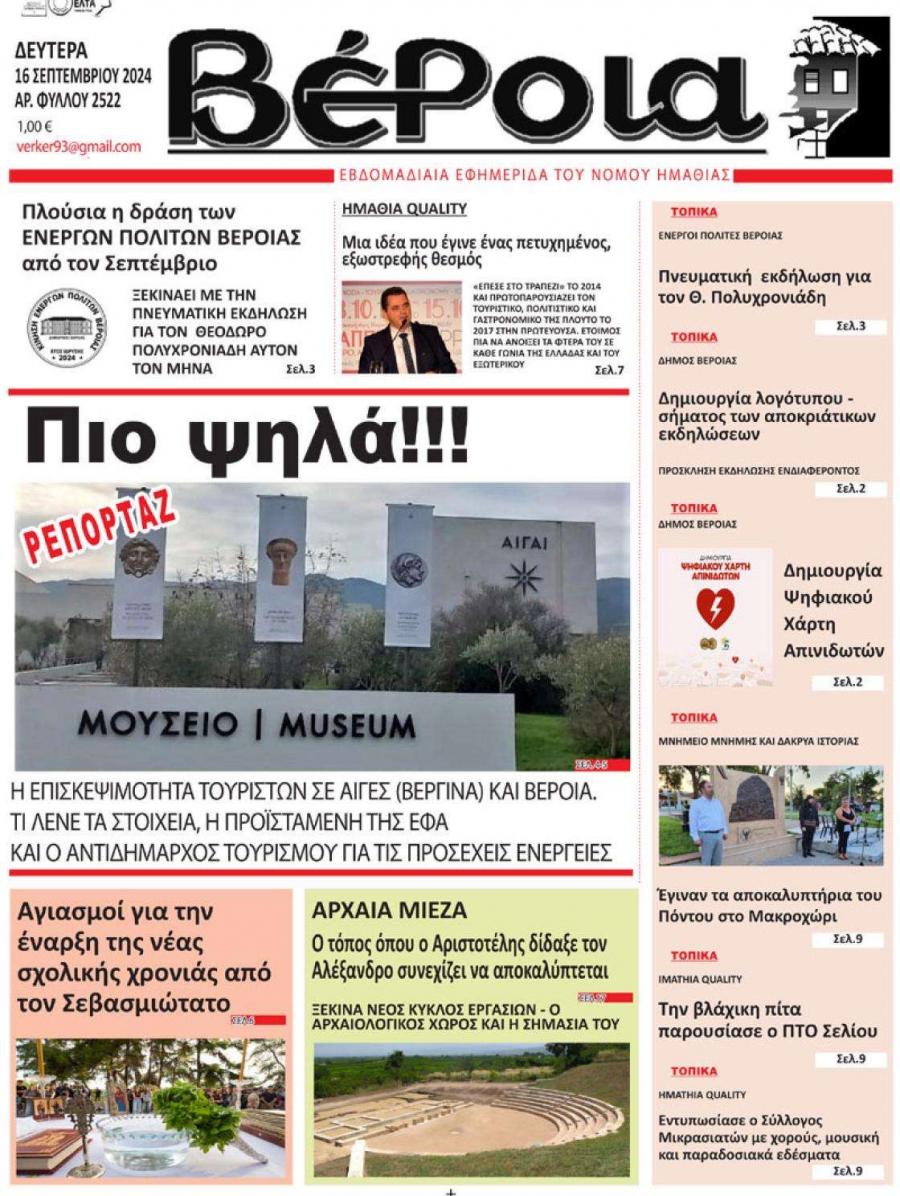 Διαβάστε σήμερα Δευτέρα στην εφημερίδα «Βέροια»