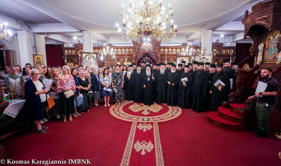 Στο τέλος του Εσπερινού ο υπεύθυνος των κατηχητικών συνάξεων Αρχιμ. Παύλος Σταματάς έδωσε οδηγίες, ενώ ο Ποιμενάρχης μας κ. Παντελεήμων επέδωσε στους 200 και πλέον κατηχητές και υπευθύνους των κύκλων μελέτης Αγίας Γραφής τα καθιερωμένα διοριστήρια για τη νέα κατηχητική χρονιά και εξέφρασε τις ευχαριστίες του προς όσους θα στελεχώσουν για ακόμη μία χρονιά τα κατηχητικά τμήματα των ενοριών της Μητροπόλεως μας.