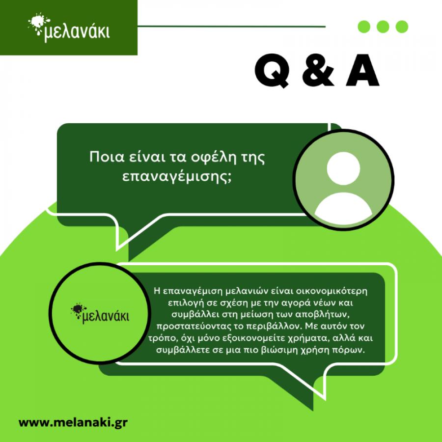 Αναρωτιέστε γιατί να επιλέξετε την επαναγέμιση μελανιών; Γιατί σας προσφέρει οικονομία και προστατεύει το περιβάλλον! Εδέσσης 16, Βέροια 23310 77557 Βετσοπούλου 46, Αλεξάνδρεια 23330 22033 www.melanaki.gr