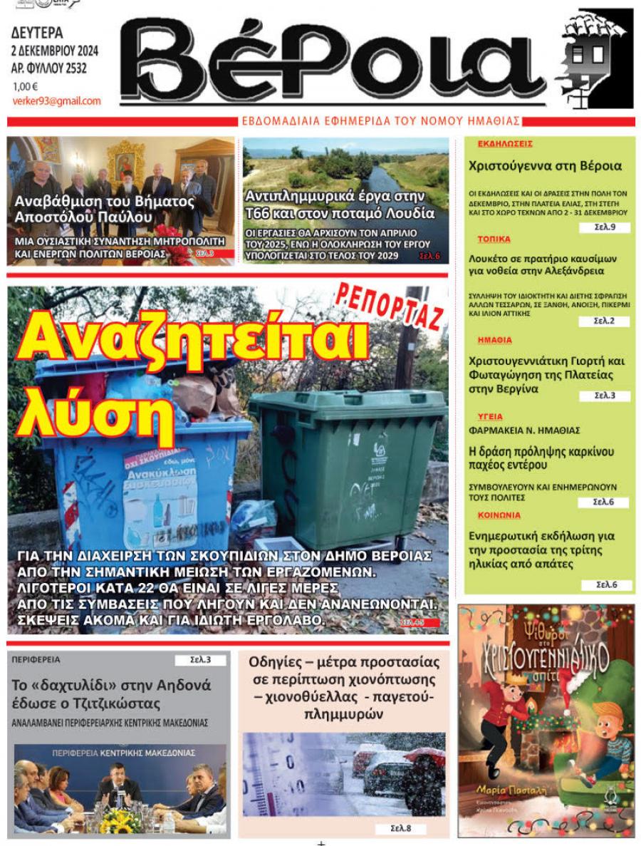 Διαβάστε στην εφημερίδα "Βέροια" της Δευτέρας