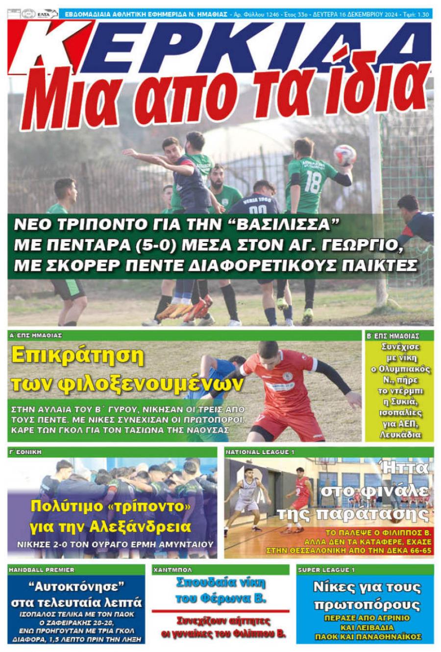 Διαβάστε σήμερα Δευτέρα στην εφημερίδα "Κερκίδα"