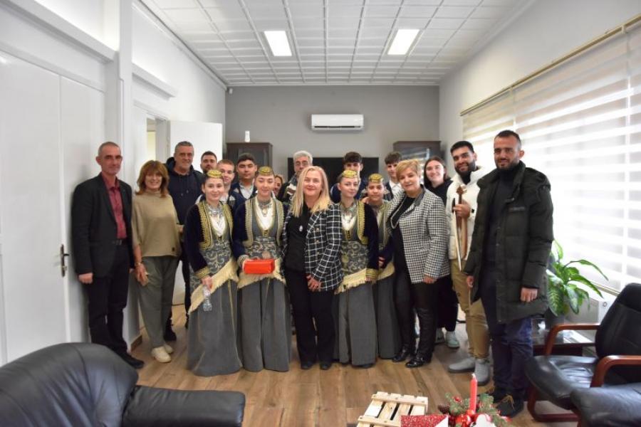 Τους υποδέχθηκαν, οι Αντιδήμαρχοι κα Άννα Ασλανίδου, κα Άννα Βασιλειάδου, κα Βίκυ Δανιηλίδου και κ. Θεόδωρος Δολδούρης, οι οποίοι τους ευχήθηκαν χρόνια πολλά, καλές γιορτές και τους μοίρασαν χριστουγεννιάτικα γλυκίσματα.
