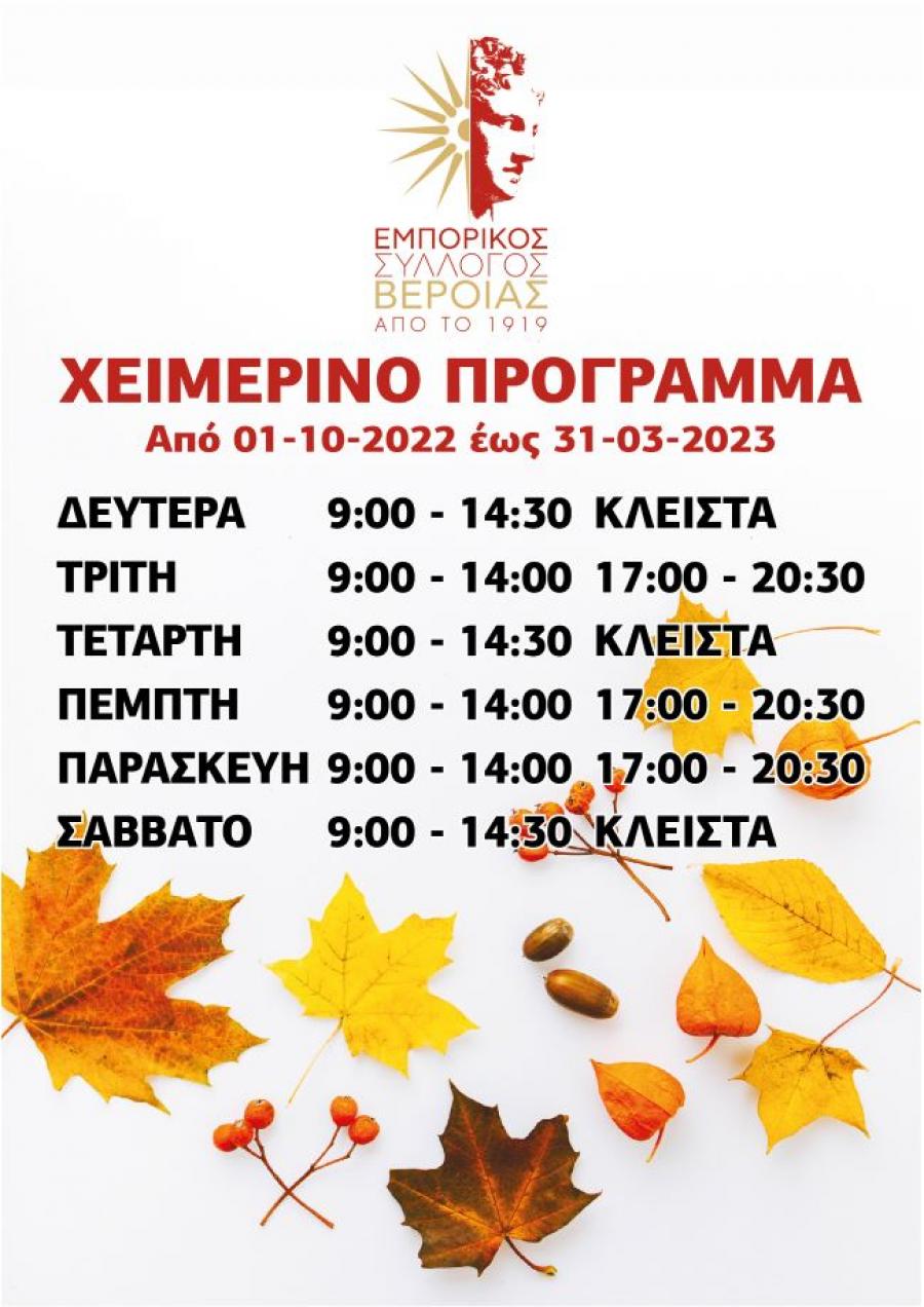 Το χειμερινό πρόγραμμα των εμπορικών καταστημάτων Βέροιας