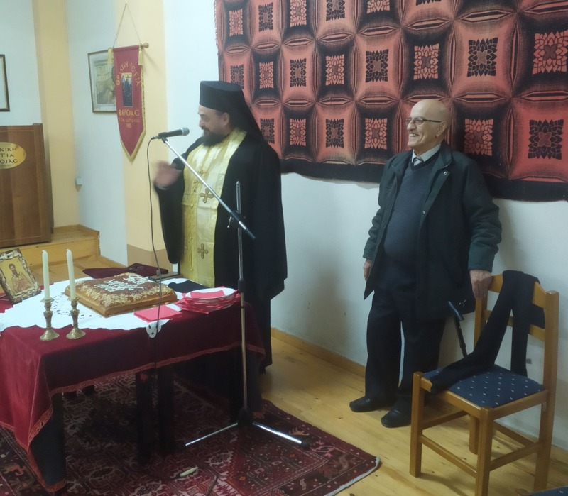 Την Βασιλόπιτα ευλόγησε ο Πανοσιολογιότατος Αρχιμανδρίτης π. Σωφρόνιος Φάκας, ο οποίος μας μετέφερε τις ευχές του και τις ευλογίες του Μητροπολίτη μας, κ. Παντελεήμονα.