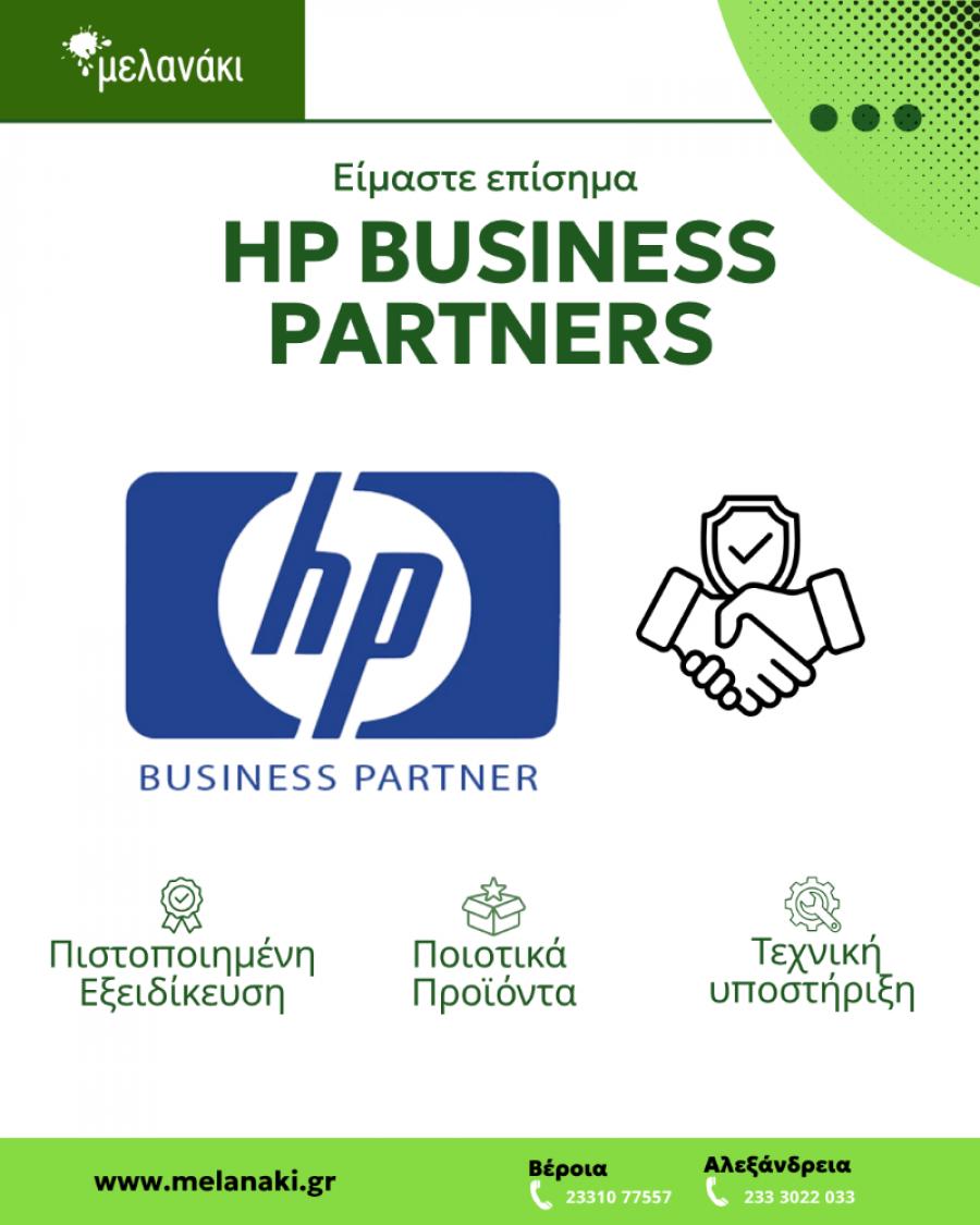 � � Είμαστε HP Business Partner! � � Πιστοποιημένο service � � Εγκεκριμένα προϊόντα � � Εξειδικευμένη γνώση � � Βρες τα όλα στο melanaki.gr � � Εδέσσης 16, Βέροια ☎ 23310 77557 � � Βετσοπούλου 46, Αλεξάνδρεια ☎ 23330 22033 � � www.melanaki.gr