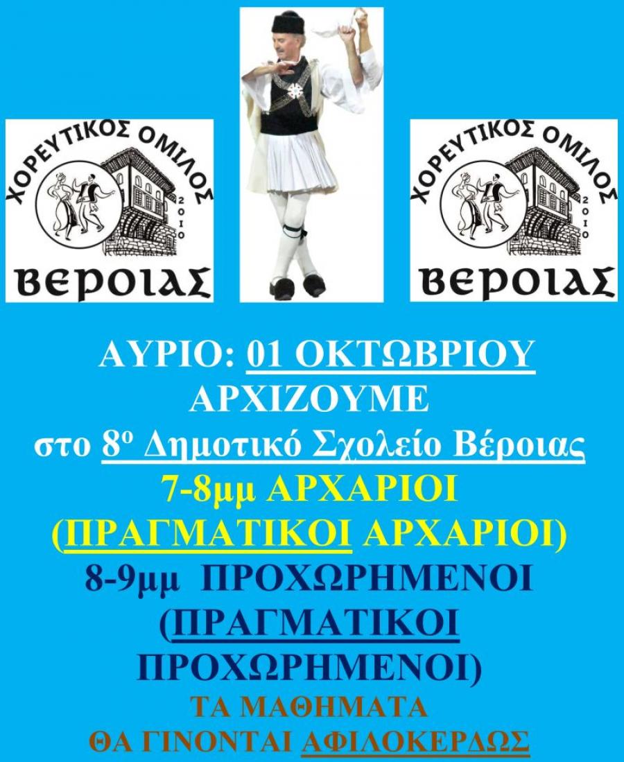 Ξεκινούν σήμερα Τετάρτη τα μαθήματα στον Χορευτικό Όμιλο Βέροιας