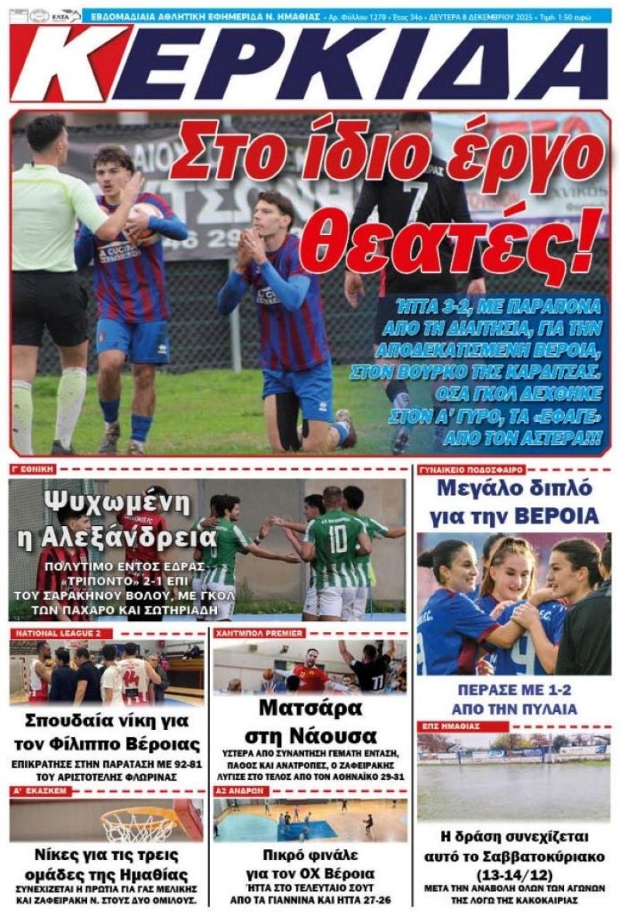 Διαβάστε σήμερα Δευτέρα στην εφημερίδα "Κερκίδα"
