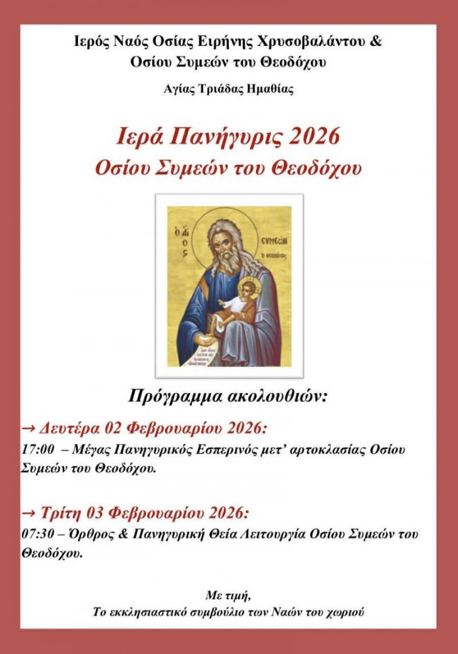 Ιερά Πανήγυρη του Οσίου Συμεών του Θεοδόχου στην Αγία Τριάδα Ημαθίας