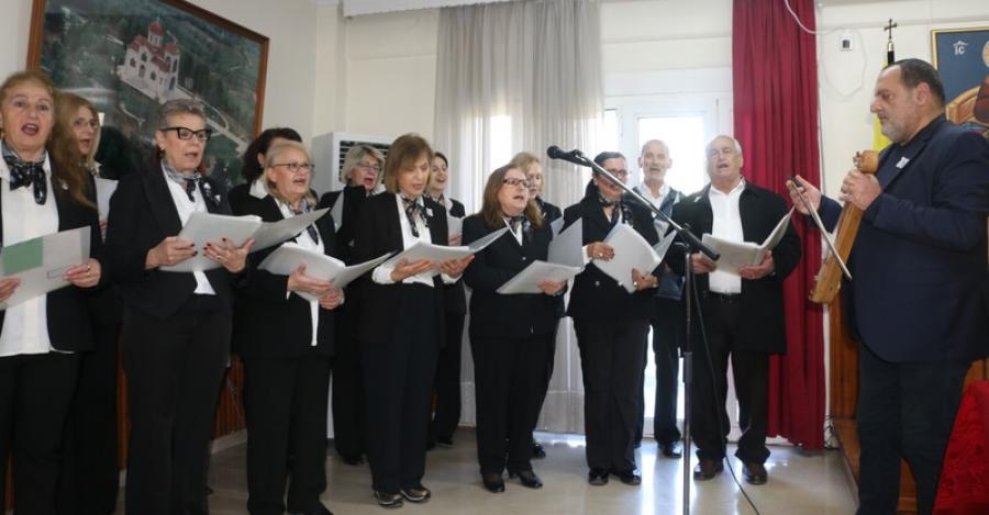 Η χορωδία του σωματείου «Παναγία Σουμελά Δήμου Θέρμης», που με την παρουσία της κέρδισε τα χειροκροτήματα των καλεσμένων απέδωσε τα παραδοσιακά τραγούδια και κάλαντα με την επιμέλεια του κου Γιώργου Στεφανίδη, χοράρχη, λυράρη και τραγουδιστή. Ιδιαίτερη στιγμή αποτέλεσαν τα παραδοσιακά δίστιχα της Γαλίαινας για τον Άγιο Γεώργιο Περιστερεώτα από τον χοράρχη και τον κο Βασίλη Πολατίδη του «Καλλιτεχνικού Χορευτικού Ομίλου Πύρριχος».