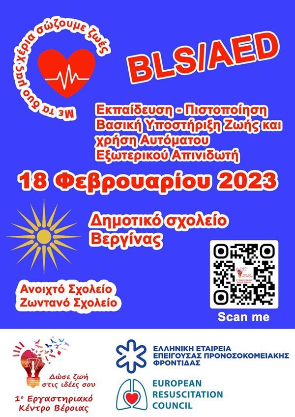 Πραγματοποιήθηκε το Σάββατο 18 Φεβρουαρίου, στον όμορφο και φιλόξενο χώρο του Δημοτικού Σχολείου της Βεργίνας, εκπαίδευση στην Βασική Υποστήριξη Ζωής (BLS) και Χρήση Αυτόματου Εξωτερικού Απινιδωτή (AED).