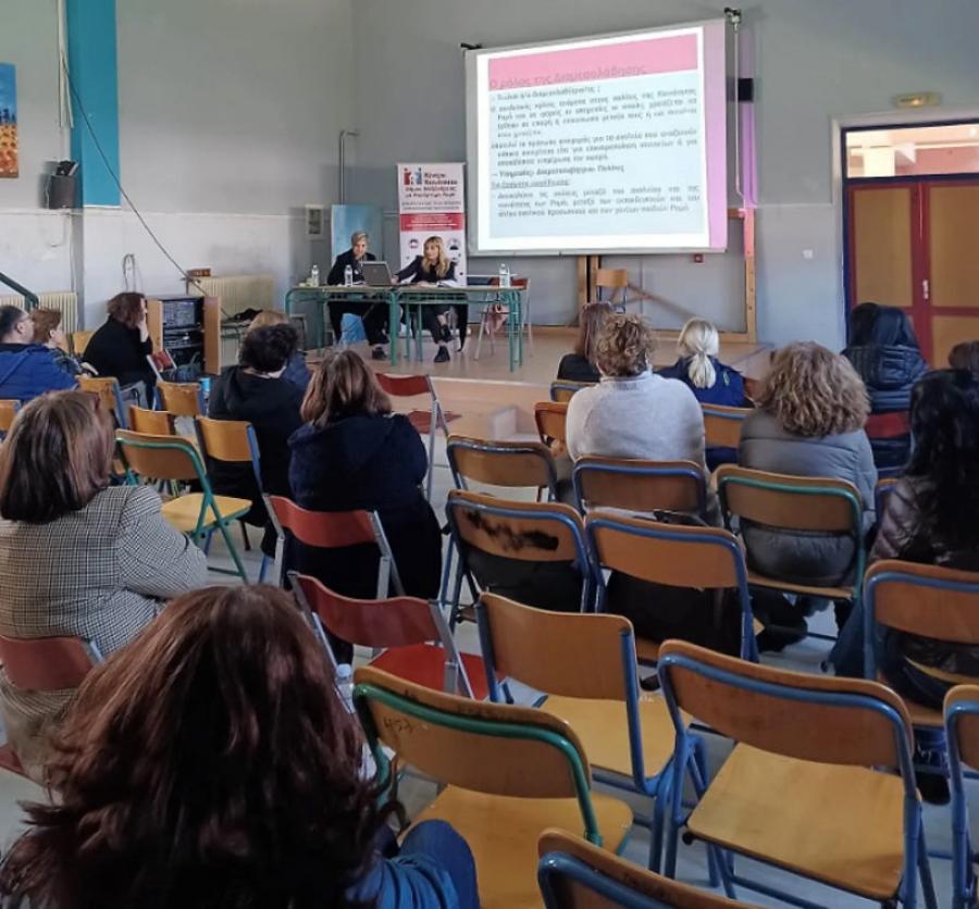 Για το θέμα εισηγήθηκαν η Κοινωνική Λειτουργός- Συντονίστρια κα Ζεϊμπεκίδου Χριστίνα, η Ψυχολόγος κα Τασσιοπούλου Μαρία και η Διαμεσολαβήτρια του Κέντρου κα Μπουκλά Θωμαή.